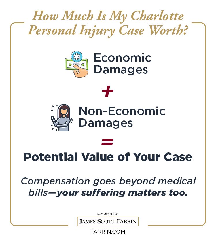 Several factors determine the potential value of your personal injury claim in Charlotte. North Carolina law allows you to seek compensation for both economic and non-economic damages when someone else’s negligence causes your injuries. Understanding these factors helps you make informed decisions about your case.